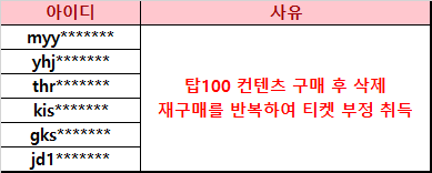 이 부분 참고하시어 상품 수령을 진행해 주시면 감사드리겠습니다. 아래로는 이벤트 당첨자 전체 리스트와 부정 참여자 명단을 안내해 드립니다. 이벤트 공지에 명시되었다시피, 부정 참여 티켓은 회수되었으니 이 점 이용에 참고 부탁드립니다. 당첨을 축하드립니다. | NO | 아이디 | 상품 | | 1 | 110******* | 신세계 상품권 10만원 | | 2 | lin******* | | 3 | tot******* | | 4 | bab******* | | 5 | tok******* | | 6 | bsw******* | 신세계 상품권 5만원 | | 7 | qaz******* | | 8 | hw2******* | | 9 | roh******* | | 10 | bla******* | | 11 | lee******* | | 12 | hyu******* | | 13 | 010******* | | 14 | sky******* | | 15 | yoo******* | | 16 | shi******* | 배민 3만원 | | 17 | and******* | | 18 | kis******* | | 19 | gad******* | | 20 | fre******* | | 21 | 1uc******* | | 22 | jun******* | | 23 | yjh******* | | 24 | jsw******* | | 25 | pws******* | | 26 | yod******* | | 27 | wls******* | | 28 | kim******* | | 29 | goo******* | | 30 | agr******* | | 31 | gks******* | | 32 | med******* | | 33 | ljw******* | | 34 | myy******* | | 35 | hwa******* | | 36 | wjd******* | | 37 | jkl******* | | 38 | boo******* | | 39 | leo******* | | 40 | jav******* | | 41 | ljw******* | | 42 | for******* | | 43 | bul******* | | 44 | knj******* | | 45 | cir******* | | 46 | kdh******* | 배민 1만원 | | 47 | mjh******* | 배민 1만원 | | 48 | jun******* | 배민 1만원 | | 49 | und******* | 배민 1만원 | | 50 | esk******* | 배민 1만원 | | 51 | egu******* | 배민 1만원 | | 52 | 15a******* | 배민 1만원 | | 53 | iso******* | 배민 1만원 | | 54 | nic******* | 배민 1만원 | | 55 | anc******* | 배민 1만원 | | 56 | jxx******* | 배민 1만원 | | 57 | cos******* | 배민 1만원 | | 58 | luv******* | 배민 1만원 | | 59 | can******* | 배민 1만원 | | 60 | jfo******* | 배민 1만원 | | 61 | san******* | 배민 1만원 | | 62 | kan******* | 배민 1만원 | | 63 | lrp******* | 배민 1만원 | | 64 | cjh******* | 배민 1만원 | | 65 | 019******* | 배민 1만원 | | 66 | khy******* | 배민 1만원 | | 67 | xha******* | 배민 1만원 | | 68 | als******* | 배민 1만원 | | 69 | pp1******* | 배민 1만원 | | 70 | JEO******* | 배민 1만원 | | 71 | mar******* | 배민 1만원 | | 72 | rea******* | 배민 1만원 | | 73 | hjs******* | 배민 1만원 | | 74 | ksr******* | 배민 1만원 | | 75 | yuj******* | 배민 1만원 | | 76 | man******* | 배민 1만원 | | 77 | yan******* | 배민 1만원 | | 78 | lan******* | 배민 1만원 | | 79 | chp******* | 배민 1만원 | | 80 | lim******* | 배민 1만원 | | 81 | qj0******* | 배민 1만원 | | 82 | glg******* | 배민 1만원 | | 83 | dlw******* | 배민 1만원 | | 84 | mon******* | 배민 1만원 | | 85 | mya******* | 배민 1만원 | | 86 | waw******* | 배민 1만원 | | 87 | hsj******* | 배민 1만원 | | 88 | bs3******* | 배민 1만원 | | 89 | rjs******* | 배민 1만원 | | 90 | aka******* | 배민 1만원 | | 91 | psw******* | 배민 1만원 | | 92 | scj******* | 배민 1만원 | | 93 | y11******* | 배민 1만원 | | 94 | jj1******* | 배민 1만원 | | 95 | bup******* | 배민 1만원 | | 96 | ray******* | 배민 1만원 | | 97 | ohy******* | 배민 1만원 | | 98 | seo******* | 배민 1만원 | | 99 | ela******* | 배민 1만원 | | 100 | ths******* | 배민 1만원 | | 101 | Hco******* | 배민 1만원 | | 102 | kjh******* | 배민 1만원 | | 103 | sup******* | 배민 1만원 | | 104 | mad******* | 배민 1만원 | | 105 | kan******* | 배민 1만원 | | 106 | mon******* | 배민 1만원 | | 107 | hjm******* | 배민 1만원 | | 108 | kks******* | 배민 1만원 | | 109 | zam******* | 배민 1만원 | | 110 | kha******* | 배민 1만원 | | 111 | apc******* | 배민 1만원 | | 112 | shi******* | 배민 1만원 | | 113 | rea******* | 배민 1만원 | | 114 | dae******* | 배민 1만원 | | 115 | moo******* | 배민 1만원 | | 116 | pdw******* | 네이버 페이 1000원 | | 117 | yb2******* | 네이버 페이 1000원 | | 118 | lek******* | 네이버 페이 1000원 | | 119 | jsh******* | 네이버 페이 1000원 | | 120 | sun******* | 네이버 페이 1000원 | | 121 | ang******* | 네이버 페이 1000원 | | 122 | ica******* | 네이버 페이 1000원 | | 123 | ccy******* | 네이버 페이 1000원 | | 124 | cle******* | 네이버 페이 1000원 | | 125 | dom******* | 네이버 페이 1000원 | | 126 | boo******* | 네이버 페이 1000원 | | 127 | gre******* | 네이버 페이 1000원 | | 128 | aki******* | 네이버 페이 1000원 | | 129 | aki******* | 네이버 페이 1000원 | | 130 | aki******* | 네이버 페이 1000원 | | 131 | pos******* | 네이버 페이 1000원 | | 132 | gol******* | 네이버 페이 1000원 | | 133 | hws******* | 네이버 페이 1000원 | | 134 | 443******* | 네이버 페이 1000원 | | 135 | kim******* | 네이버 페이 1000원 | | 136 | goo******* | 네이버 페이 1000원 | | 137 | yin******* | 네이버 페이 1000원 | | 138 | inc******* | 네이버 페이 1000원 | | 139 | ums******* | 네이버 페이 1000원 | | 140 | gle******* | 네이버 페이 1000원 | | 141 | wl6******* | 네이버 페이 1000원 | | 142 | kaz******* | 네이버 페이 1000원 | | 143 | sgi******* | 네이버 페이 1000원 | | 144 | 724******* | 네이버 페이 1000원 | | 145 | rla******* | 네이버 페이 1000원 | | 146 | sc0******* | 네이버 페이 1000원 | | 147 | ley******* | 네이버 페이 1000원 | | 148 | hos******* | 네이버 페이 1000원 | | 149 | gcj******* | 네이버 페이 1000원 | | 150 | cjh******* | 네이버 페이 1000원 | | 151 | wav******* | 네이버 페이 1000원 | | 152 | js6******* | 네이버 페이 1000원 | | 153 | cho******* | 네이버 페이 1000원 | | 154 | jun******* | 네이버 페이 1000원 | | 155 | sur******* | 네이버 페이 1000원 | | 156 | s53******* | 네이버 페이 1000원 | | 157 | jcy******* | 네이버 페이 1000원 | | 158 | pdg******* | 네